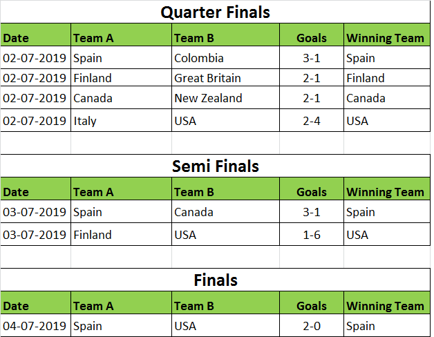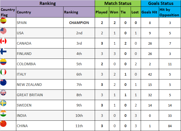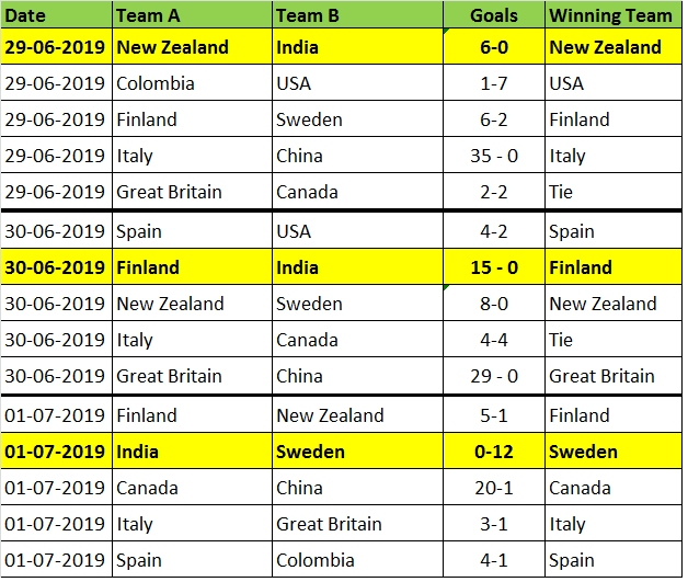 Updated Results (01-07-2019): India fail to record any Win in the Inline Hockey Match (Junior Men & Women) at World Roller Games, Barcelona so far. Whereas four teams (Colombia & Namibia) under Junior Men and (Finland & New Zealand) under the Junior Women category got qualified for Quarter Finals.