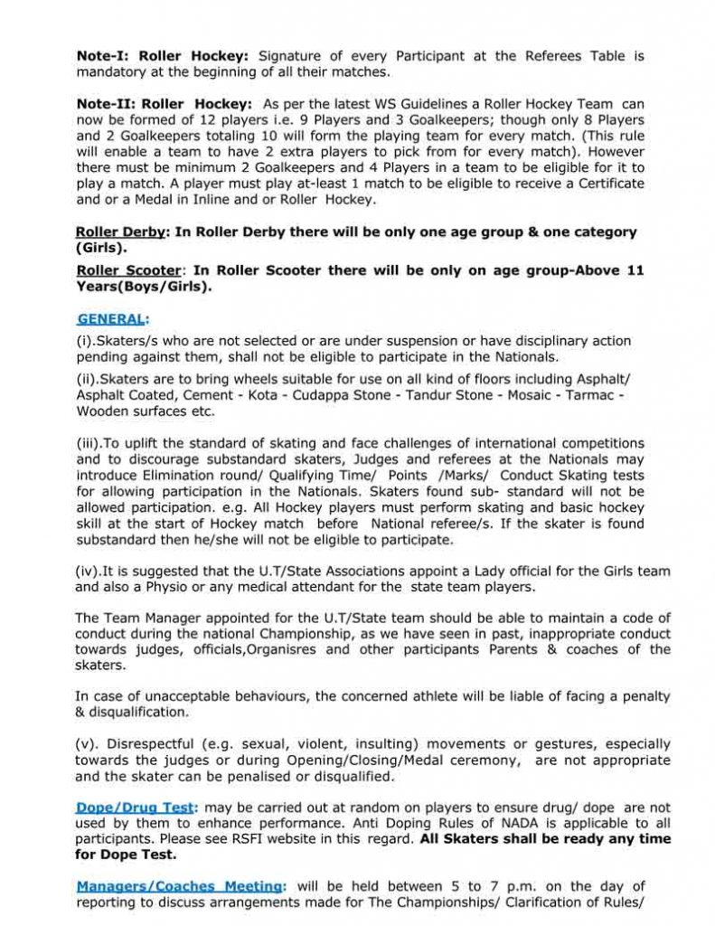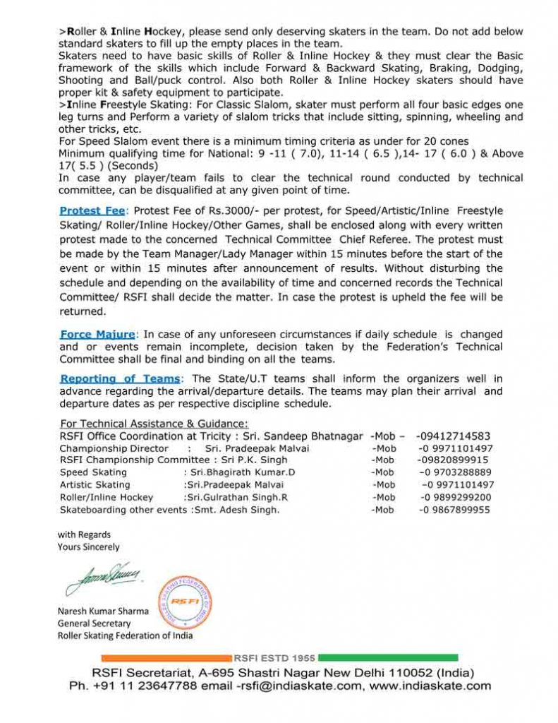 Please go through all the instructions carefully and adhere to the same. The below information is provided by RSFI (Roller Skating Federation of India)